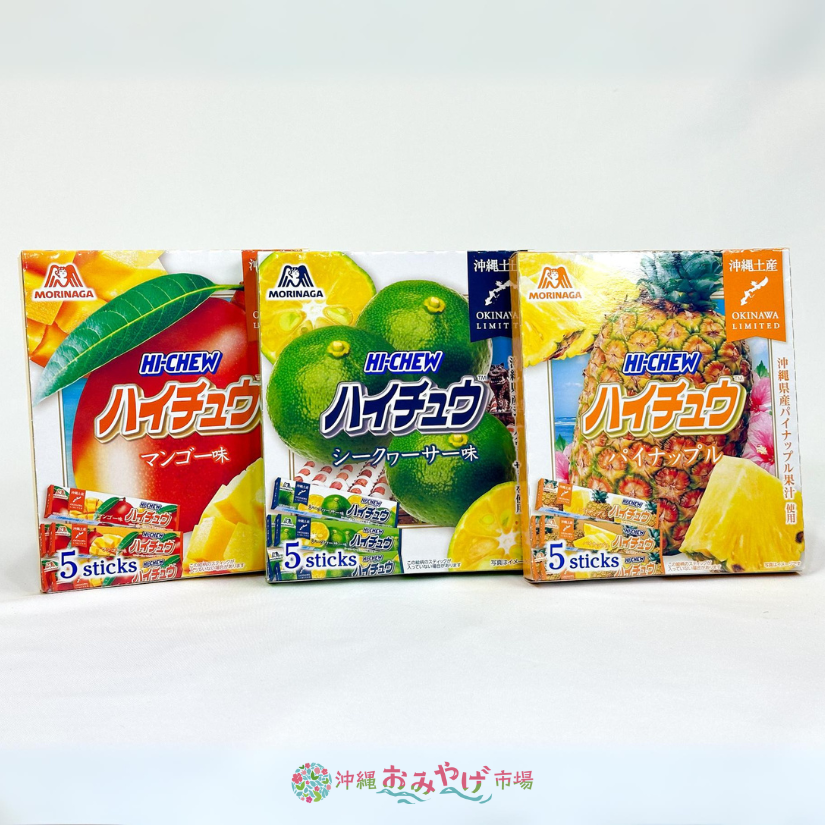 沖縄県産パイナップルの果汁を贅沢に使用した、ハイチュウ 沖縄限定パイナップル味。ひと粒噛むごとに、太陽の光をいっぱい浴びたパイナップルの甘酸っぱさがじゅわっと広がります。まるで、沖縄をそのまま味わっているような、トロピカルな味わいを存分にお楽しみください。